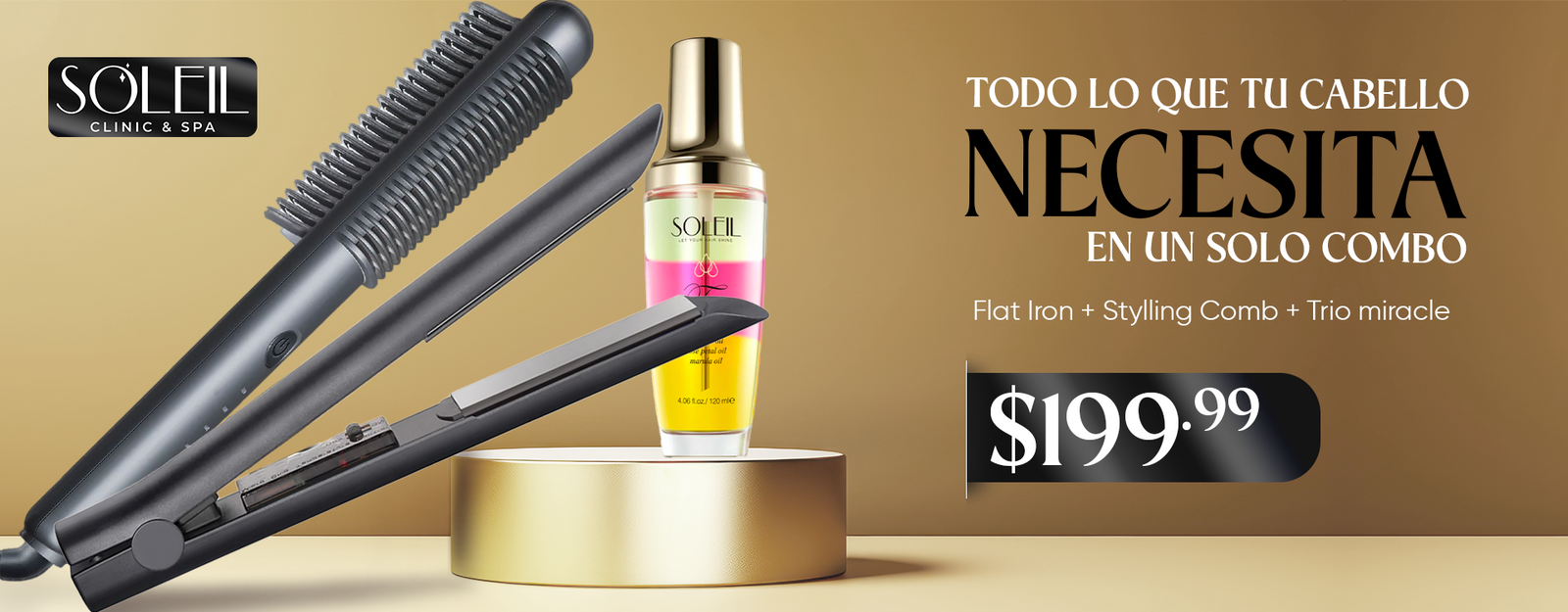 Get these three items for only $199.99, Argan Trio Miracle Oil 24 K, Styling Comb Heat Brush and Ceramic Flat Iron. Simply add all three items to your cart to see the automatic discount. *Offer valid from January 5-31, 2026. Puerto Rico residents only. Free pickup available at Plazas las Americas and Soleil Salon & Spa in Caguas.